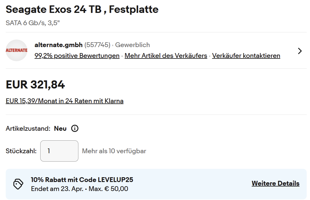 Von der Richtung habe ich einige, die ich intern im Heimserver nutze. War schön billig damals (sogar 14TB), aber die Bezugsquelle weiß ich nicht mehr.