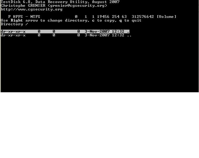 also wenn ich auf p drückt seh ich meine dateien aber in deinem link steht dass man mit "c" die daten bei NTFS kopieren könnte. aber ich FAT32 bei der festplatte un "c" gibts da auch net
