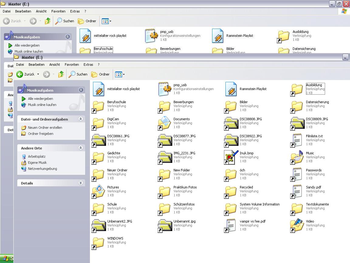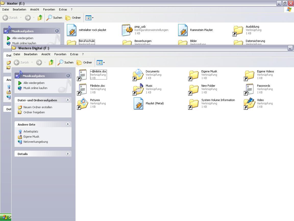 ich habe seit heute ein riesen problem mit meiner externen festplatte. auf einmal sind nur noch verknüpfungen da un ich habe keinen zugriff mehr auf meine daten. Habe eine Western Digital Festplatte und Windows XP als betriebssytem. wie kann das kommen und wie kann ich das wieder beheben, damit es so ist wie vorher??