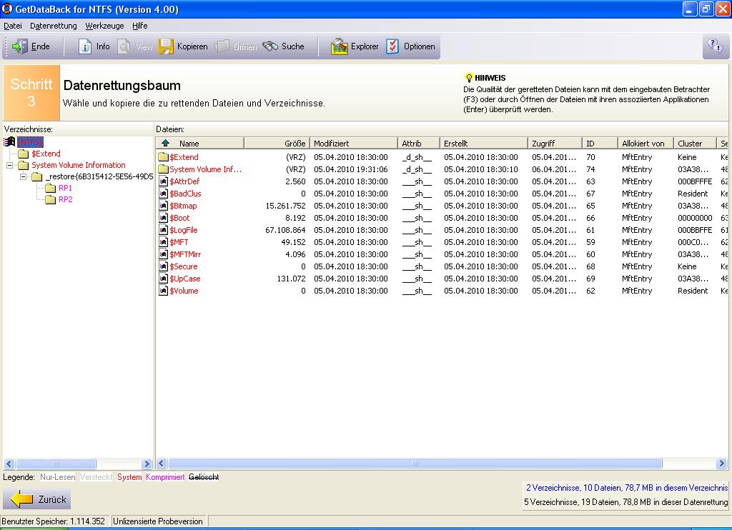 ich bräuchte mal Hilfe: Anlässlich meines Urlaubs habe ich mir vorgenommen, meinen Rechner endlich mal komplett neu zu installieren. Ein paar mehr oder weniger wichtige Dateien habe ich auf der externen Festplatte meiner Schwester zwischengespeichert.