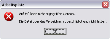 Im Arbeitsplatz hat sich die Plattenbezeichnung auf: Lokaler Datenträger zurückgesetzt, was auch sehr komisch ist. Und wenn ich zugreifen möchte, erhalte ich folgende Fehlermeldung: