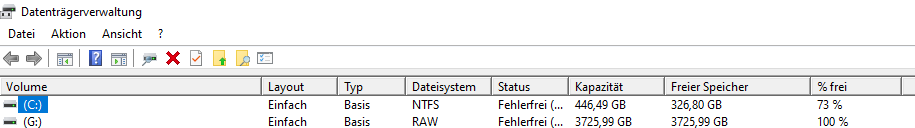 Komisch finde ich das er als Dateisystem RAW anzeigt.