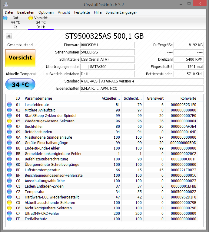seit ein paar Tagen funktioniert eine Partition meiner externen Festplatte nicht mehr (natürlich die wichtige). Es gibt 2 Partitionen, wie gesagt eine funktioniert ganz normal, die andere Laufwerk (H) kann nicht angeklickt werden und wird als RAW erkannt.