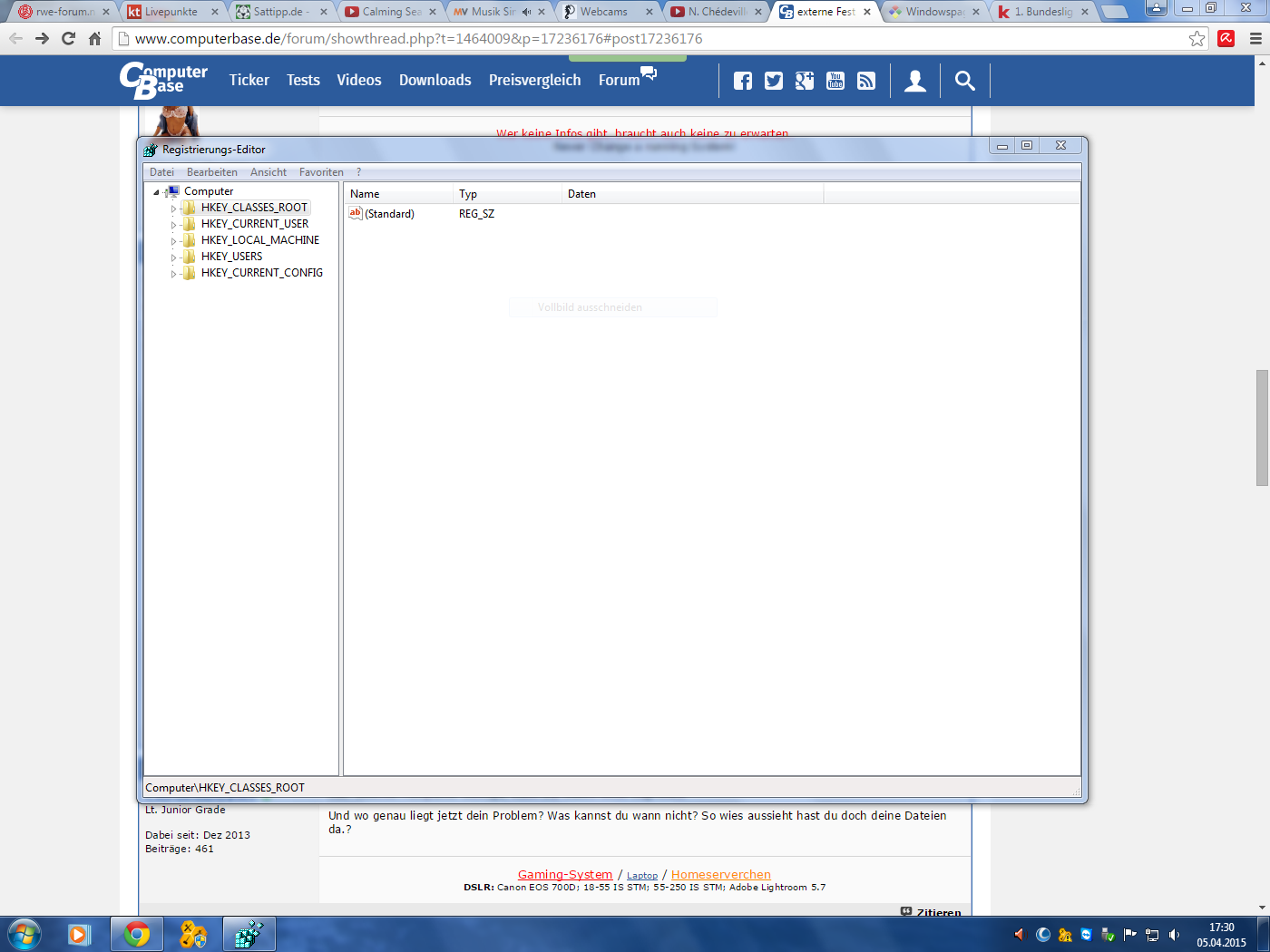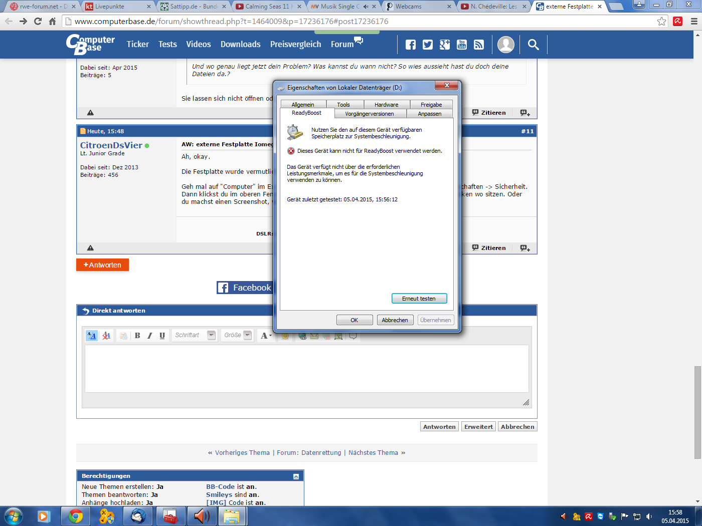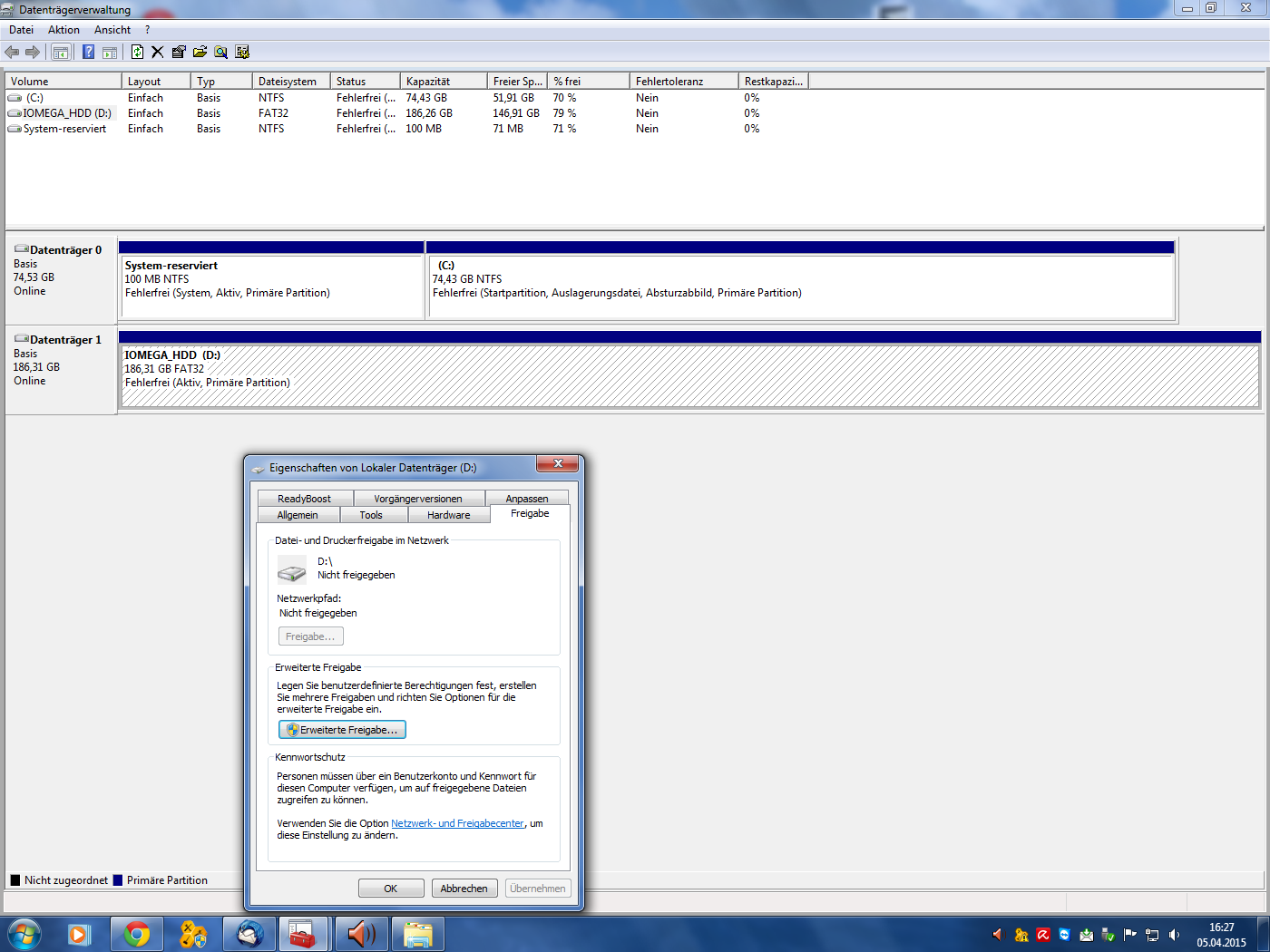 Ok, ich habe einen neuen Computer, mit Windows 7, hatte bei meinem alten (XP) eine externe Festplatte (iomega) und habe diese nun an meinen neuen PC angeschlossen. Dieser erkennt die Festplatte und zeigt auch die Dateien an, nur lassen sich die Dateien nicht öffnen. Ich muss dann die externe Platte ausschalten, um überhaupt weiter machen zu können.