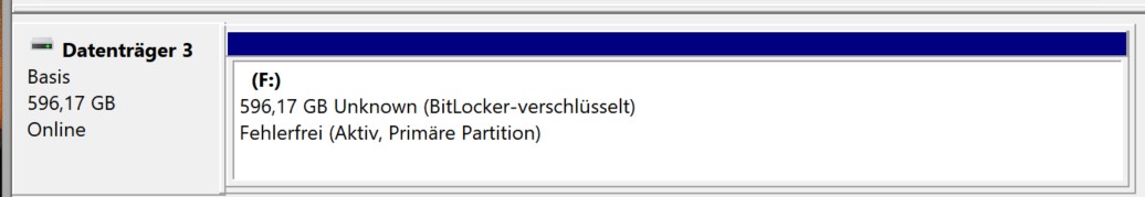 So sieht das bei mir unter Win 10 Pro aus, wenn ein Laufwerk (hier ein USB Stick) komplett Bitlocker verschlüsselt ist