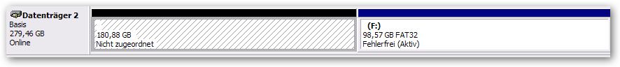 Dabei ist die NTFS-Partition verschwunden. Siehe Screenshot. ("Datenträger 2 nicht zugeordnet")