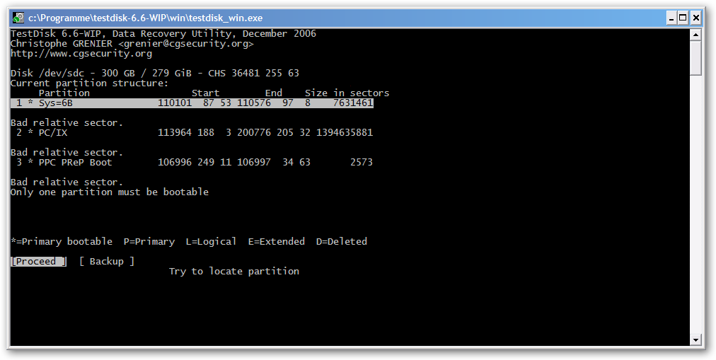 Testdisk zeigt mir folgendes: siehe Screenshot. Anscheinend ist da alles durcheinander geraten. :-(