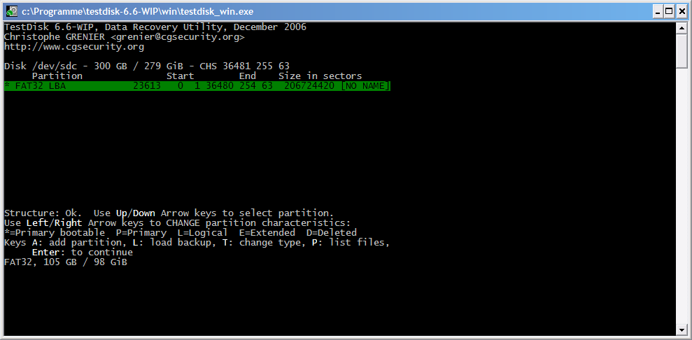 Alle weiteren Scans zeigen mir nur die neue FAT32-Partition.