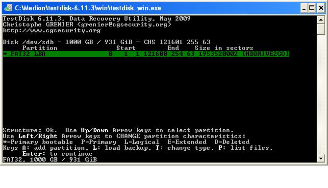 Ich habe mit Testdisk eine Analyse gemacht. Die Platte wird mit der richtigen Größe angezeigt und bei P werden mir auch die Daten angezeigt. Bei der Advanced Analyse bekomme ich folgende Meldung: