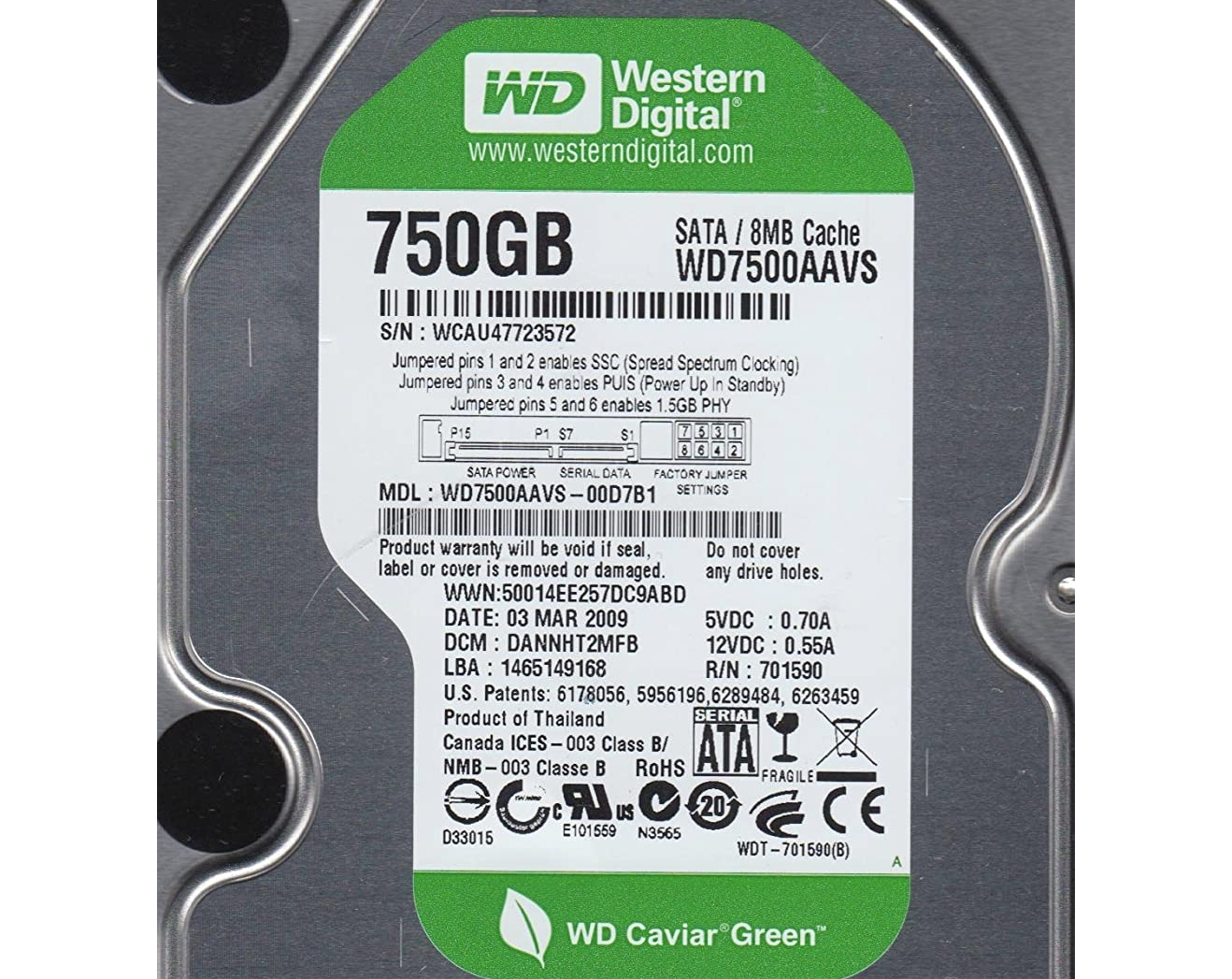 ich habe eine externe Festplatte, WD7500AAVS.