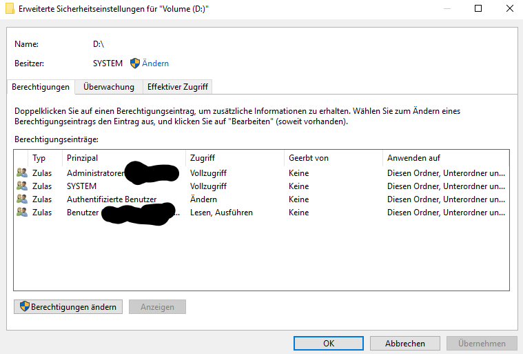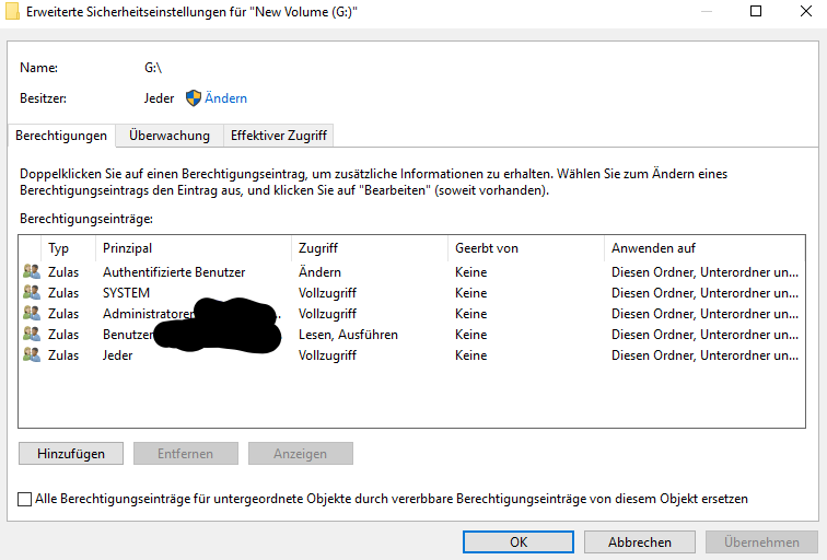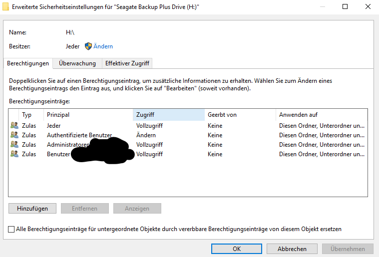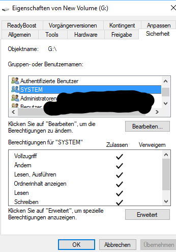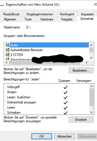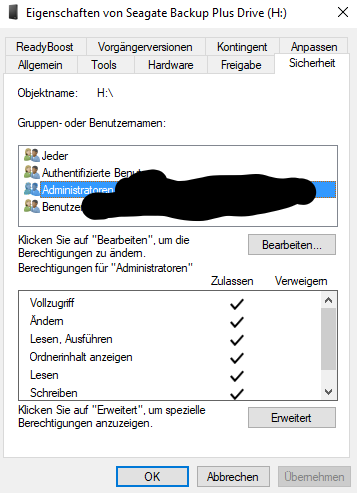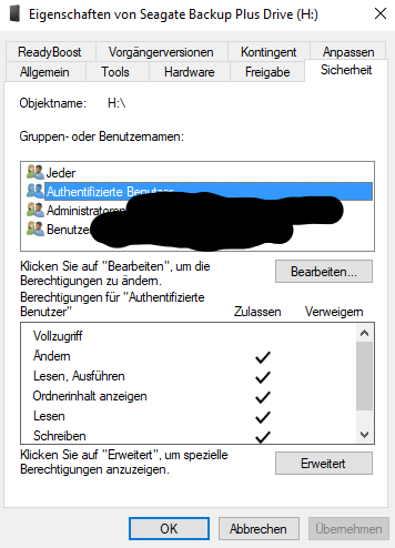 Bei meinen Externen Festplatten scheint auch was mit den Berechtigungen nicht zu stimmen.