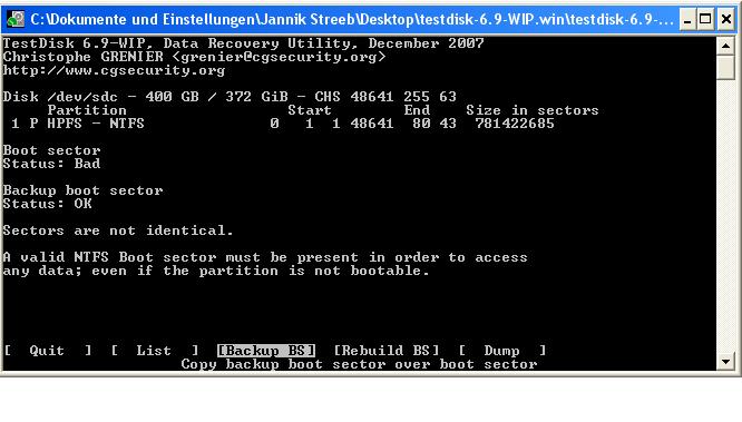 Daher die Empfehlung wenn du auf diesen Screen deine Daten bei gesehen hast auf Backup BS zu gehen und mit Eingabe, y und Ok bestätigen.