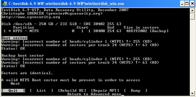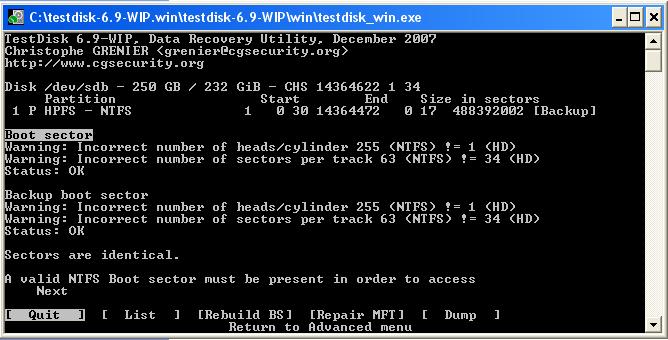 Ja nun, wie soll ich das am Besten jetzt erklären?! Frag mich bloß nicht was bei mir am PC los ist, ich kanns dir beim besten Willen nicht erklären. Irgendwas scheint da ganz gehörig nicht zu stimmen. Jedenfalls: Die Erste Festplatte die lief ja wieder super (laut TestDisk und allem). Die gesicherten Dateien der zweiten Festplatte wollte ich nun auch auf der ersten Sichern, da wo die anderen ja auch schon waren. Also schließe ich die erste an, keinerlei Probleme, wird erkannt, kann auf meine Dateien zugreifen, etc. Anmerkung: Die zweite im Moment nicht korrekt funktionierende Festplatte war zu dem Zeitpunkt AM PC angeschlossen. Jedenfalls mache ich bei der Ersten Festplatte über Arbeitsplatz CHKDSK. Dann hieß es, bitte neustarten, weil da auf einige Windowsdateien nicht zugegriffen werden kann. Also mache ich neustart. Die zweite platte war immer noch am System. PC neustartet und ich glaube den Rest kannst du dir denken... Die Erste Platte ist nun mit samt allen zuvorgesicherten Daten wieder nicht mehr da, unbekannte Partition, das gleiche Spiel. Nur anscheinend etwas dramatischer: Ich gehe in TestDisk, stelle die Geometrie wieder richtig ein, die natürlich wieder total verstellt war, klicke auf advanced, mache die partition sichtbar - halt genau das gleiche wie schonmal. Aber es hieß dort bei Advanced Boot dass die Sektoren nun wieder übereinstimmen. Neustart gemacht, wieder verstellt. Dann bin ich auf Repair MFT. Hat scheinbar nichts groß unternommen, nur: Sehe ich meine Daten nicht mehr. Weder auf List, noch bei QuickSearch, noch bei deeper search Bei List erscheinen nur 2 Ordner mit "..." hintendran mit dem heutigen Datum. Sowohl bei QuickSearch, als auch bei DeeperSearch erscheint aber eine Partition grün. Aber keine Daten zu sehen bei "P" oder List.