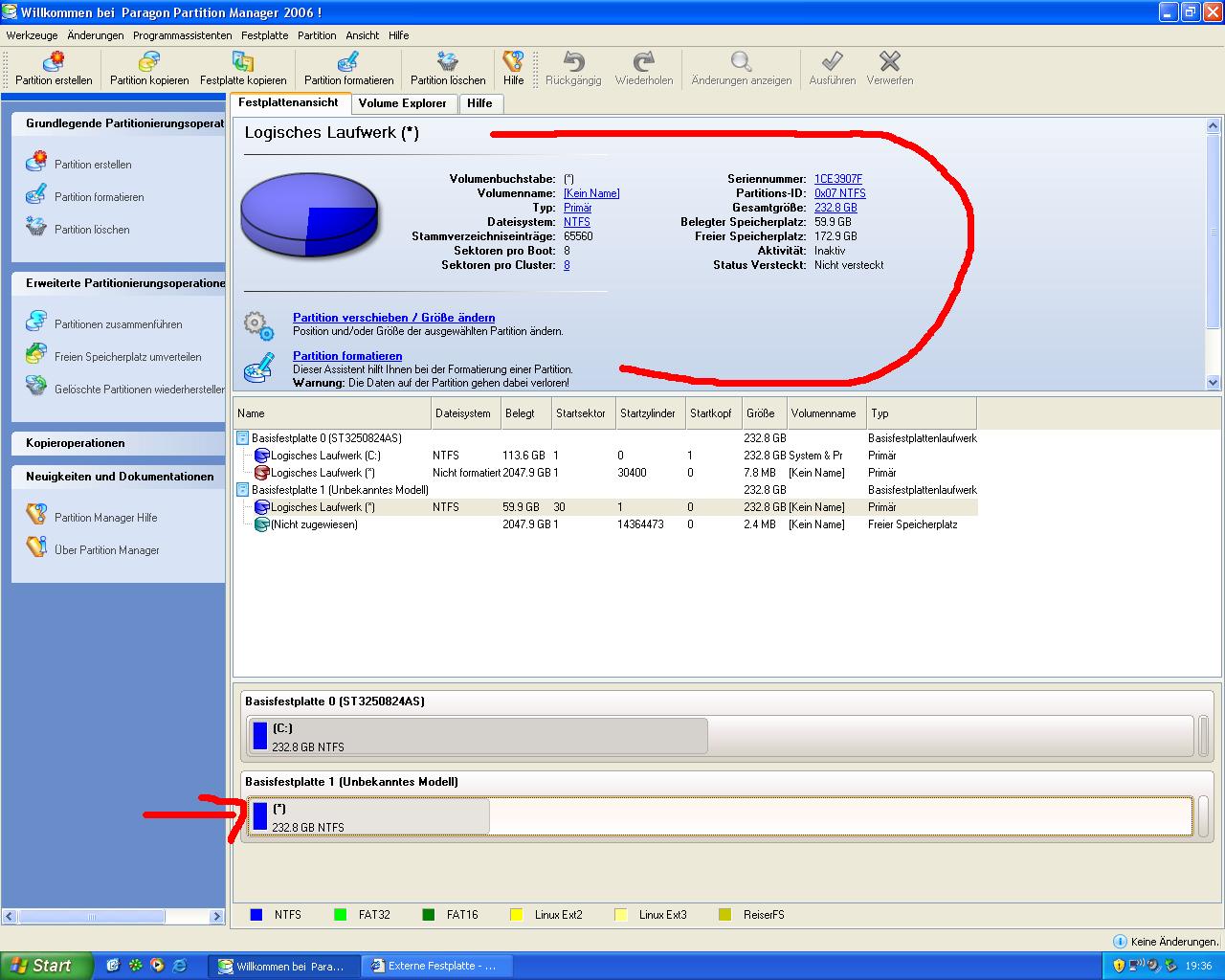 PS: Eine tröstende Entdeckung: Die Daten scheinen noch da zu sein, zumindest sagt mir das Paragon Partition Manager. Der zeigt an, dass ein gewisser Teil des Speicherplatzes belegt ist. Siehe Screenshot.