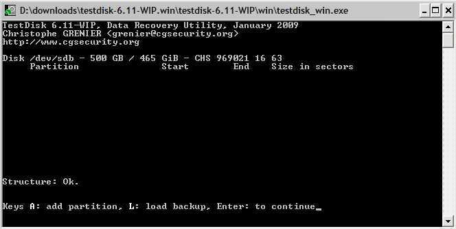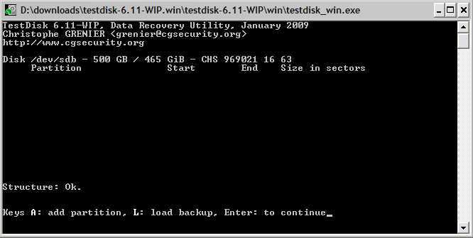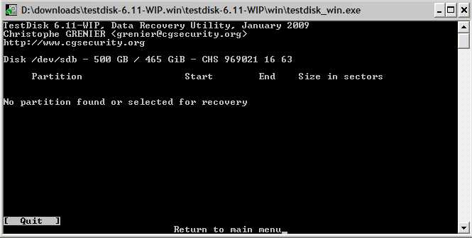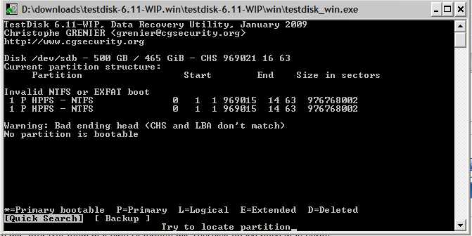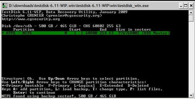 - Die Analyse mit Testdisk zeigt zwei Einträge an