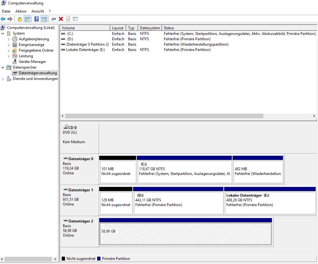 Hier mal ein Screen von der Datenträgerverwaltung. Zu sehen ist einer der USB Sticks (Datenträger 2)