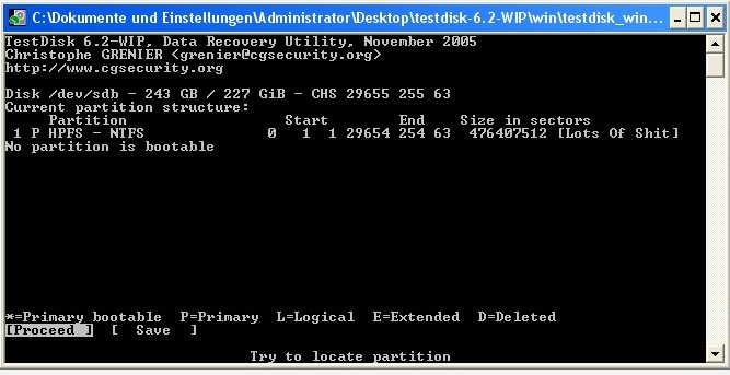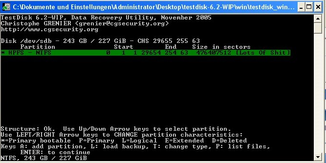 Ich will nichts falsch machen und deswegen hab ich noch nichts versucht. Lediglich Test Disk 6.2 habe ich mir runtergeladen, aber ich weiss nicht was ich nun tun soll.