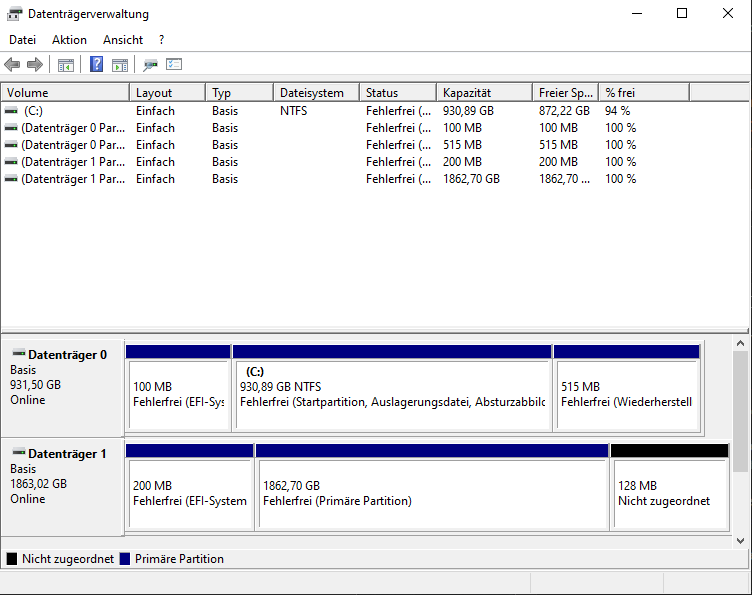 Also in der Taskleiste ja, aber nicht im Ordner unter Geräte und Laufwerke... Laut Datenträgerverwaltung (siehe Bild) werden irgendwie 4 Datenträger angezeigt, aber keiner lässt sich öffnen oder bearbeiten per Rechtsklick.