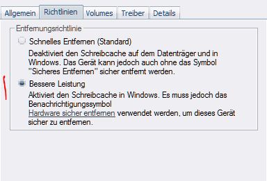 - Die Festplatte wird im „Geräte-Manager“ unter den Laufwerken als „USB-Device“ angezeigt. In den Eigenschaften steht dass „das Gerät funktioniert einwandfrei“