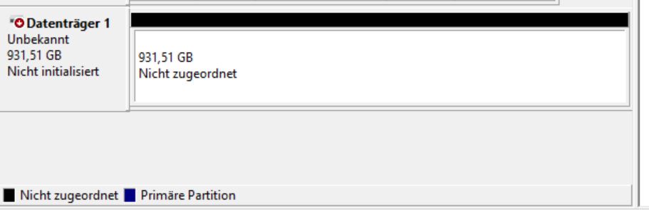 nach dem Öffnen der Datenträgerverwaltung kommt der Hinweis zur Initialisierung, Datenträger 1 und GPT ausgewählt, aber es erscheint danach ein Datenfehler (CRC-Prüfung)....