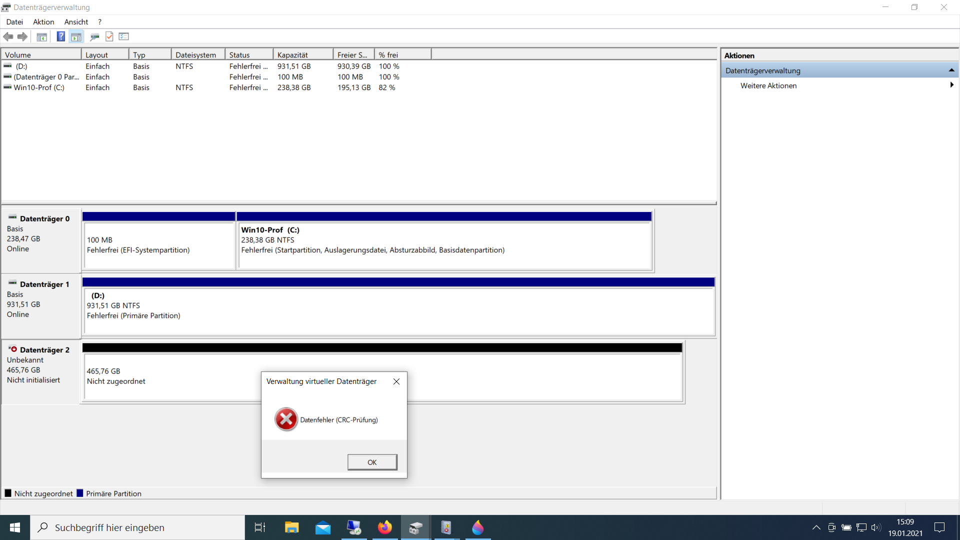 Die Anschlüße und Kabel sind in Ordnung und auch auf anderen Laptops funktioniert die Erkennung nicht. Ich habe ein Screenshot angefügt. Die CRC-Fehlermeldung kommt wenn ich auf Datenträgerinitialisierung gehe.
