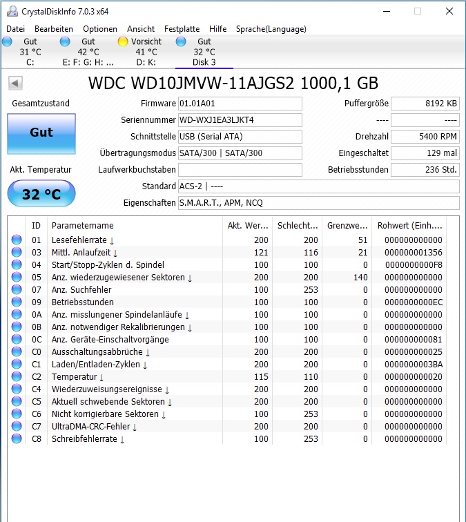 meine WD My Passport Ultra wird von WIN 10 nicht mehr erkannt. Zwar kommt dieser Sound wenn ich sie einstecke und
