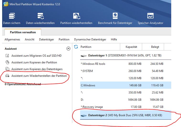 Ich habe irrtümlich ein falschen Netzteil angesteckt und seither erkennt Windows 10 die Platte nicht mehr als Laufwerk. Wenn ich in die Datenträgerverwaltung gehe, sehe ich einen Datenträger. Dort ist aber mit der Beschreibung "Datenträger 2, Unbekannt, nicht initialisiert". Wenn ich auf Eigenschaften gehe, steht dort etwas von "WD Duo", d.h. in meinem laienhaften Verständnis denke ich mir, ganz "weg" kann die Platte ja nicht sein.