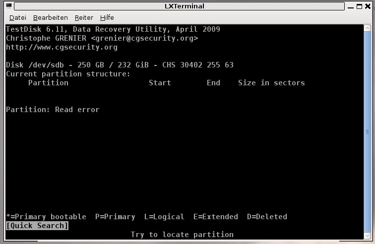 Momentan ist die Festplatte direkt angeschlossen an meinem 2. Pc worauf Knoppix V6.2 per Live CD läuft und mit testdisk durchsucht wird, anbei ein Screenshot dazu.
