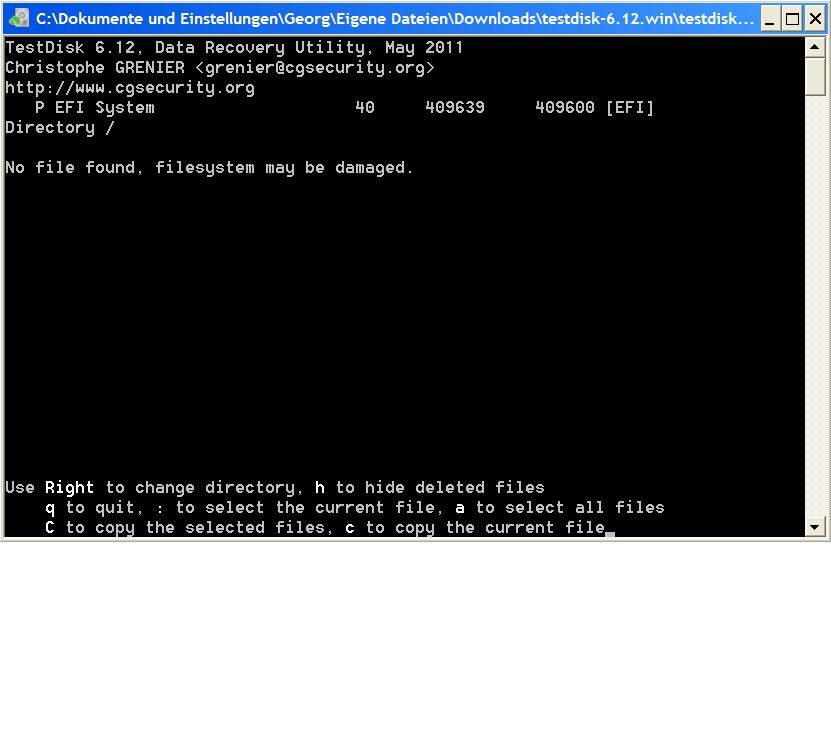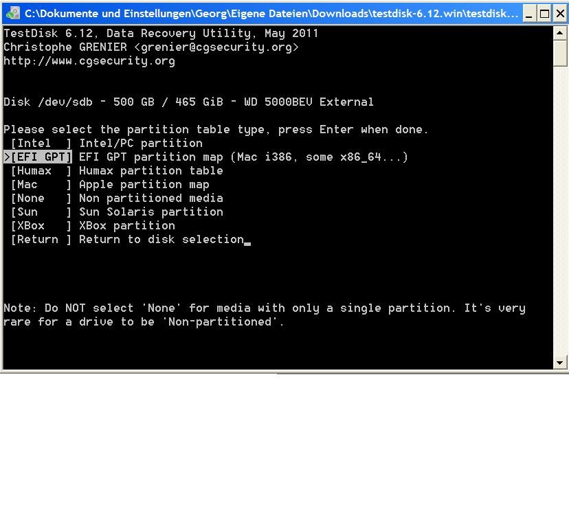 Was mir aufgefallen ist, wenn ich bei "select partition table type" auf INTEL (bild 7 und 8) gehe finde ich die Daten. Gehe ich auf das automatisch ausgewählte EFI GPT (Bild 1-6) finde ich die Daten nicht.
