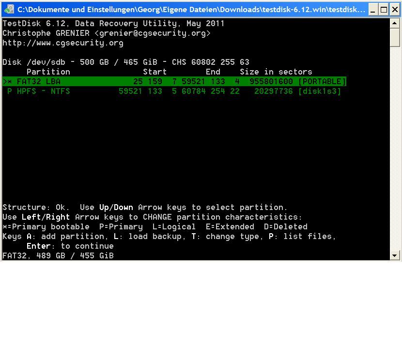 Mit ein bisschen stöbern hier im Forum habe ich TestDisk laufen lassen und gesehen, dass alle Daten noch auf der Festplatte vorhanden sind. Allerdings bekomme ich es nicht hin, dass die Festplatte erkannt wird.