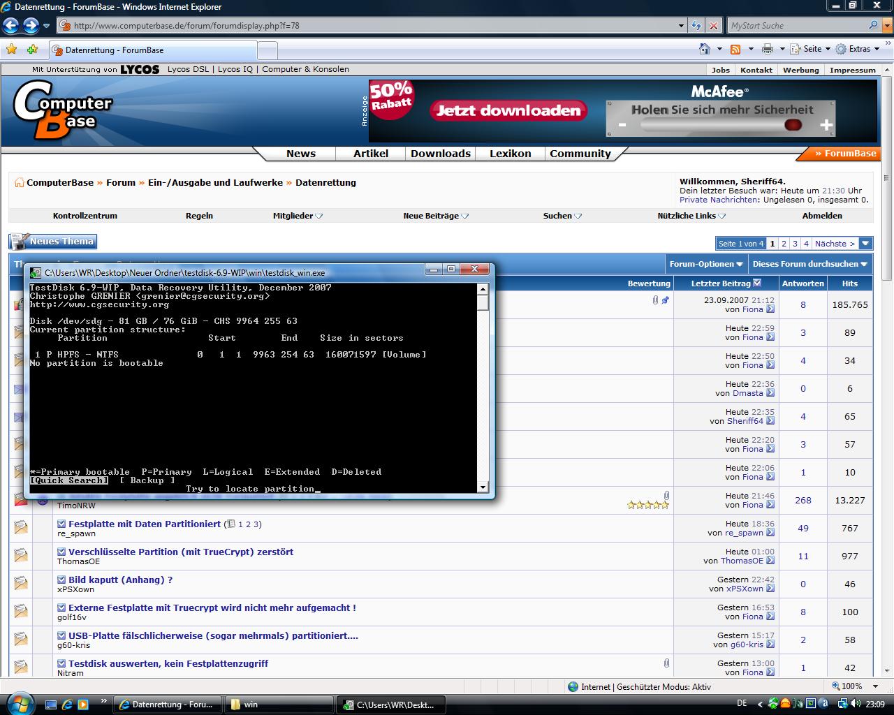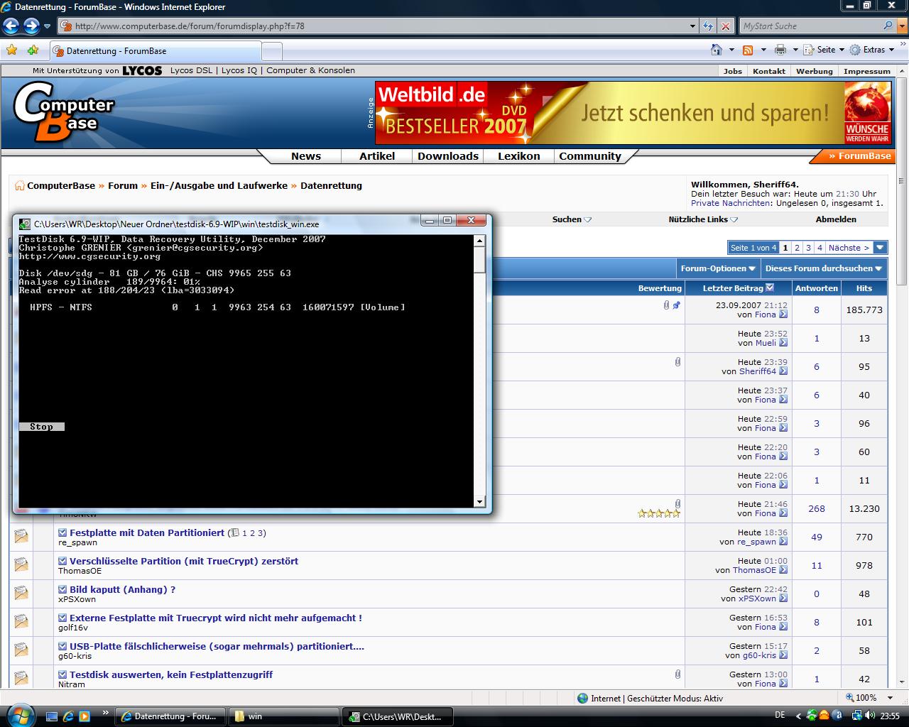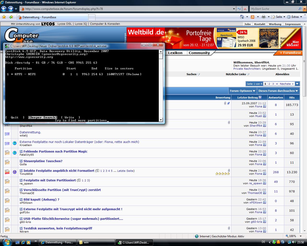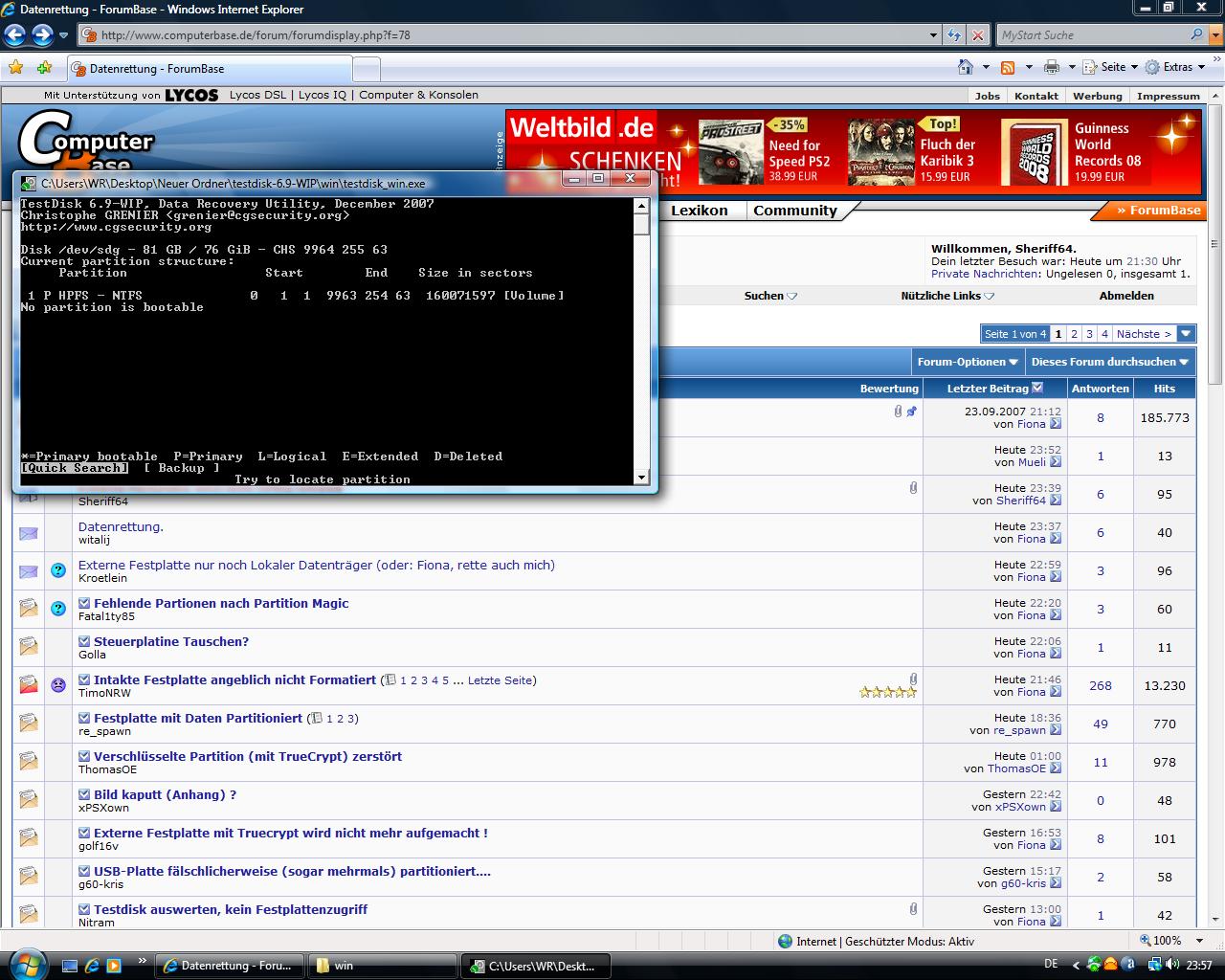 Hab mir auch schon TestDisk geladen, das funktioniert aber scheinbar unter Vista nicht so recht oder?