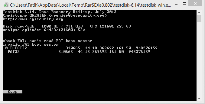 Ich untersuche gerade die Festplatte mit TestDisk. Momentan bei 89% ().