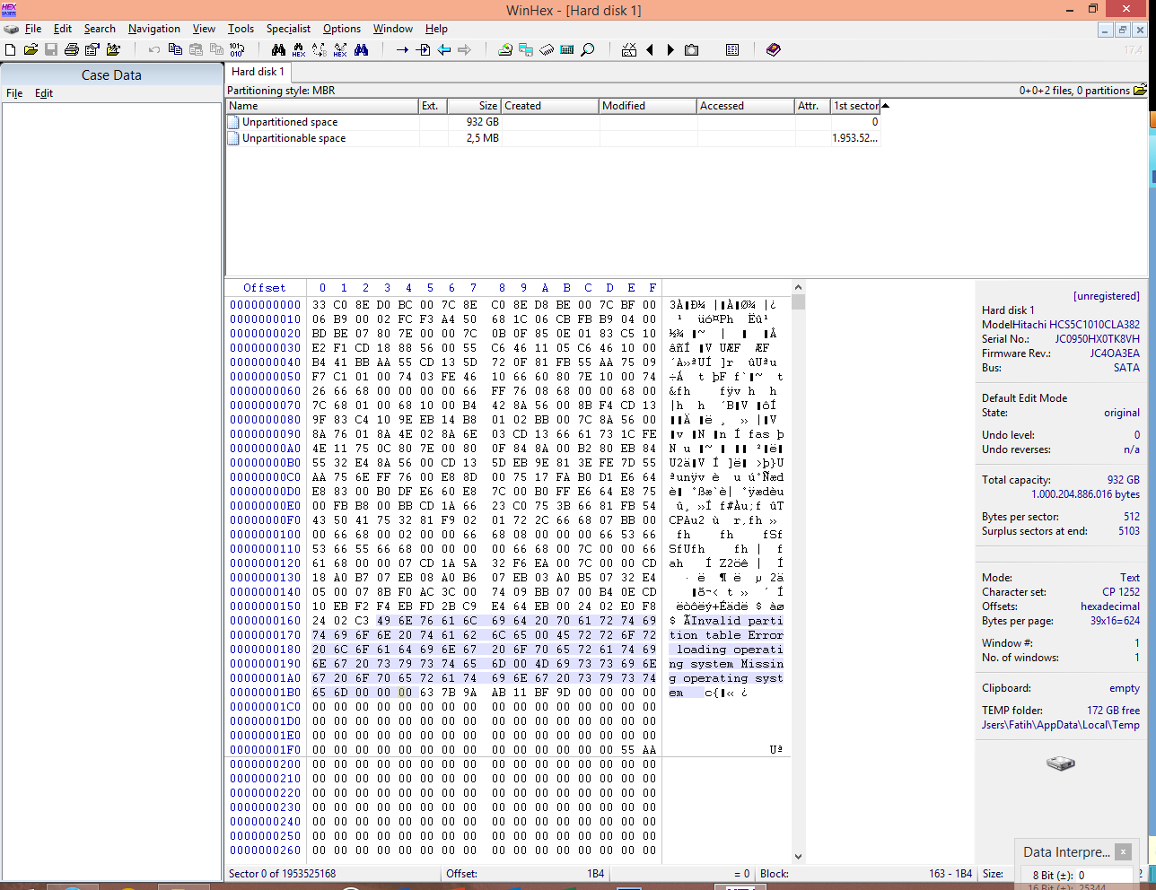 Seit heute wurde die externe HDD(Hitachi LifeStudio DeskPlus) nicht erkannt. Ich weiß nicht ob es nur Einbildung war, aber ich habe leichte seltsame Gerüche von der HDD feststellen können. Dann Gehäuse geöffnet intern über SATA angeschlossen (also die ehemals als externe benutzt wurde) und nun wird die Festplatte zwar erkannt, aber als "nicht zugeordnet" (Bild Nr.1). Formatierung habe ich noch nicht durchgeführt. Nach dem ersten Anschließen habe ich nur MBR (Partitionsstil?!) ausgewählt. Ich hoffe, dass das kein falscher Klick war!