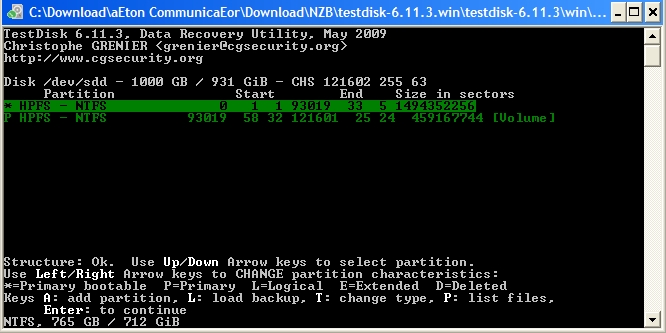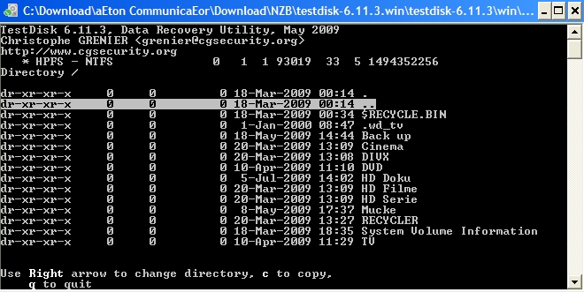 es handelt sich um eine Verbatim Terabyte Platte und die war mit einer partition gemacht oder wie man da schreibt^^. ich wollte eine 2. partition machen weil ich ein Backup meiner ps3 machen wollte. Das blöde war nur das die PS3 nur fat32 system lesen kann so hab ich die die erste part. verkleinert um dann die 2. part auf fat32 zu formatier das ging sowweit noch ganz gut. wollte nun die 2. part wieder löschen nach dem backup und was passiert meine 1. partition wird nicht mehr als NTSF angezeigt sondern als RAW hab mich dann hier viel durchgelesen mit dem programm testdisk komm aber da nicht ganz zurecht ich kann die platte finden er findet sie als ob es eine partition wäre und ich kann auch die daten mit der ordner struktur darauf finden aber wie jetzt vorgehen muss hab ich bis jetzt nicht kapiert.