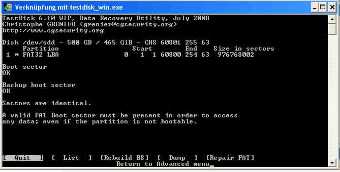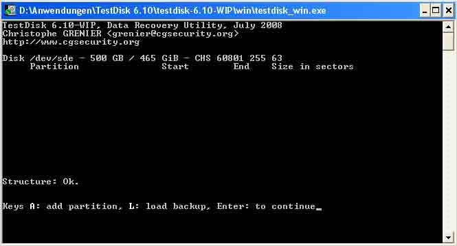 => Test Disk zeigt nach Quick search, structur: ok an, nächstes Fenster sind dann 7 Auswahlpunkte (Analyse, Advanced usw...) was soll ich nun weiter tun?