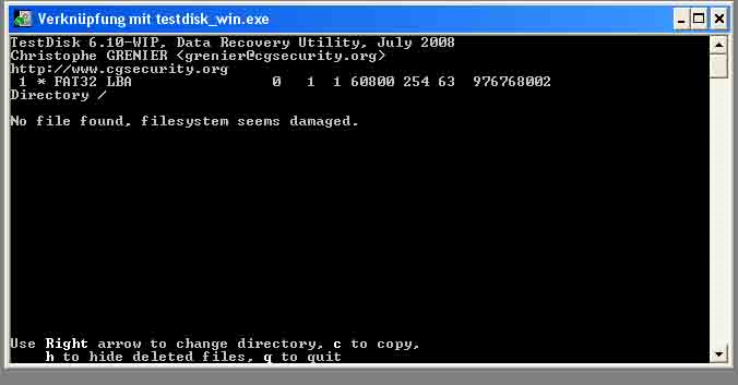 => Partition Magic 8 zeigt die Platte auch richtig mit Fat32 an, jedoch mit dem Zusatz "Fehlfunktion bei der Prüfung".