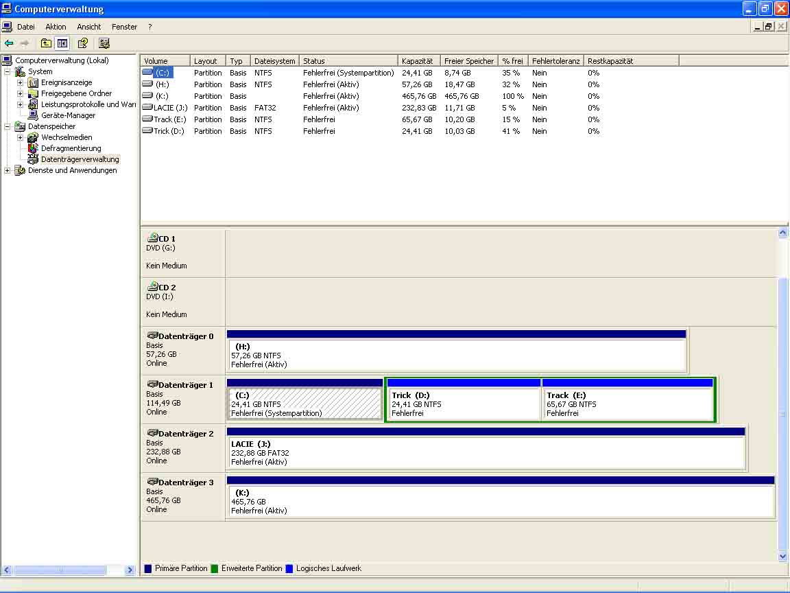 => Die Platte wird in der Win XP - Datenträgerverwaltung mit Fat32 angezeigt,