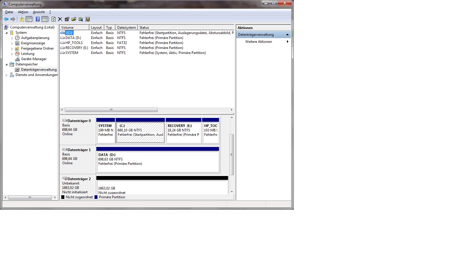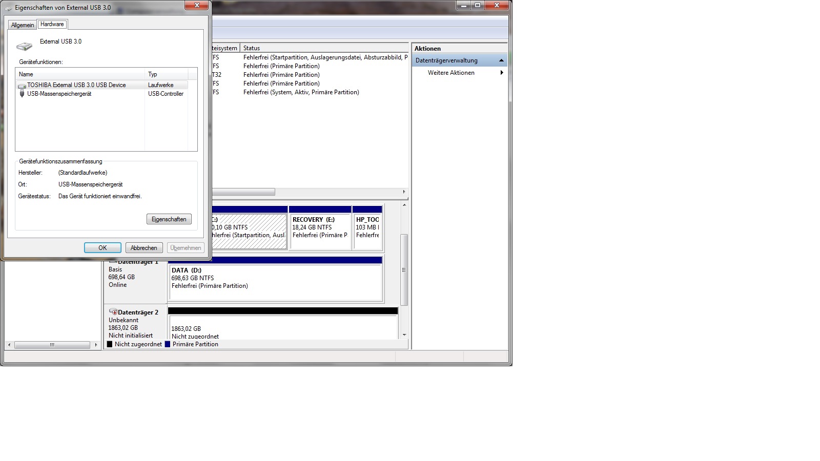 in der computerverwaltung erkennt er die platte, kann sie aber nicht zuordnen