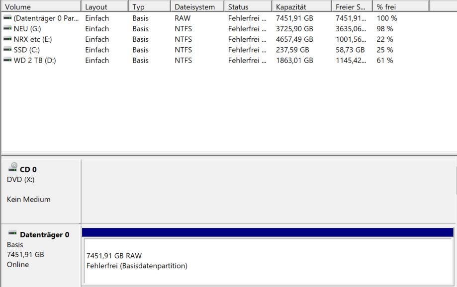 Ich habe eine externe FP (Gehäuse von Intenso) bisher mit einer 3 TB Festplatte betrieben. Nun habe ich die FP ausgetauscht und durch eine 8 TB FP ersetzt. Sie wird aber vom Betriebssystem (W 10) nicht erkannt.