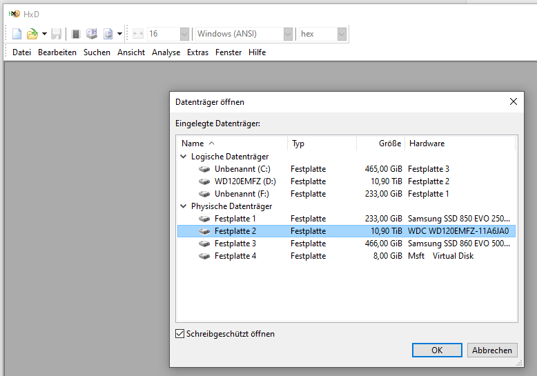 Wie von Win7 gewohnt, wollte das BS nun einen Gerätetreiber kurz nach dem Anstecken an den PC installieren. Dies schlug fehl. "Gerätetreiber konnte nicht installiert werden". Im Explorer wird die HD nicht gezeigt, auch CrystalDisk, SeaTools for Windows oder Festplattenmanager Programme zeigen die HD nicht an, bzw. hängen sich auf.
