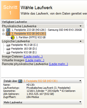 Da es sich um die gesamte HDD handelt, bin ich wie folgt vorgegangen: