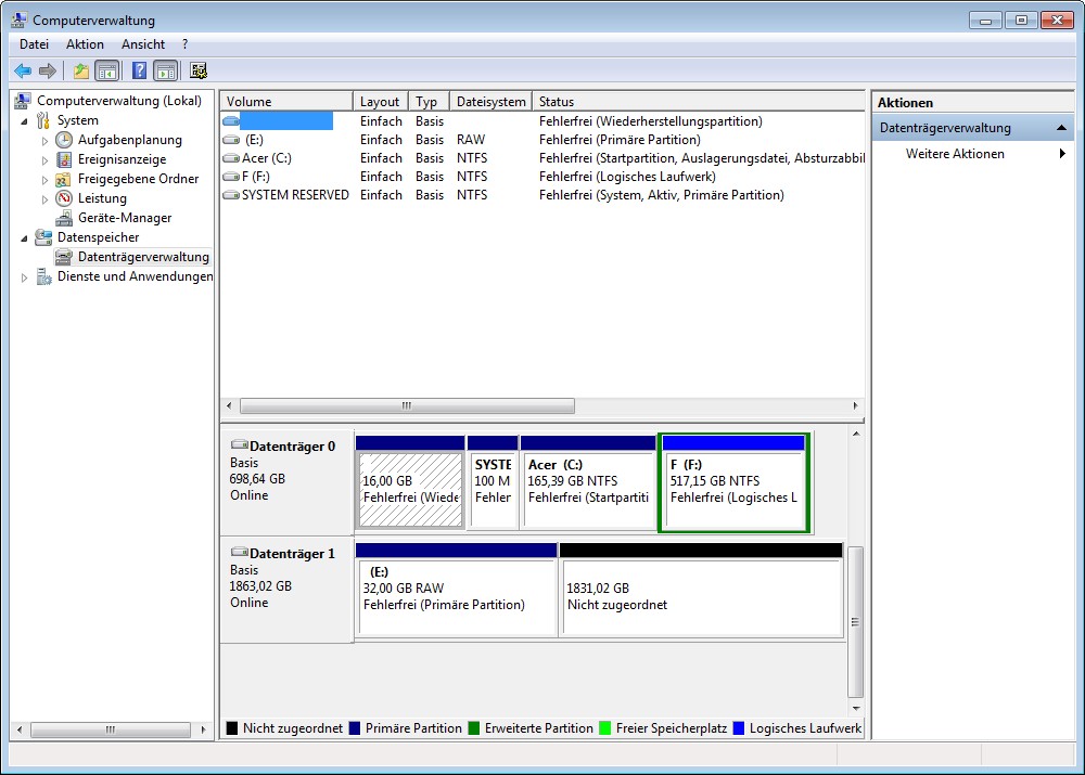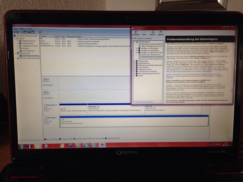 Die betroffene Partition sollte wenn du den Screen machst markiert sein.