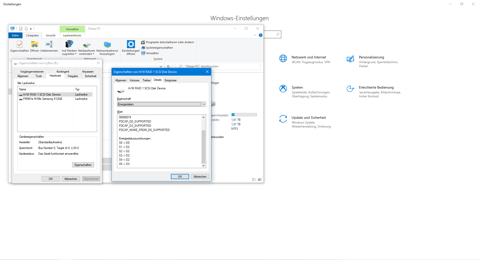 Bei meinem alten PC (Asus A93S Serie mit Windows 7) liefen die Platten mit einer sehr geringen Drehzahl und waren immer sofort da, wenn ich auf die HDDs zugegriffen habe. Daher kann ich mir das eigentlich nur in Kombination mit dem Windows 10 oder irgendeinem davon abhängigen Treiber vorstellen... Leider habe ich keine Möglichkeit, das mit einem weiteren PC bzw. Notebook auszuprobieren