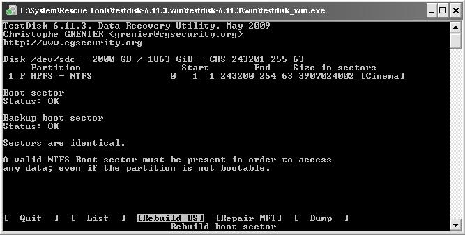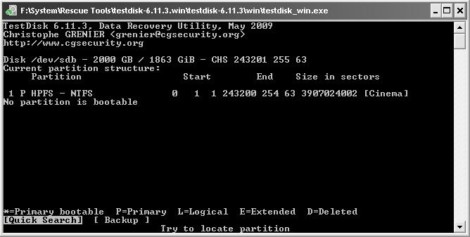 Danach hab ich mal testdisk (V6.11.3) angeworfen, wobei ich zugeben muss, dass ich mich damit leider sehr wenig