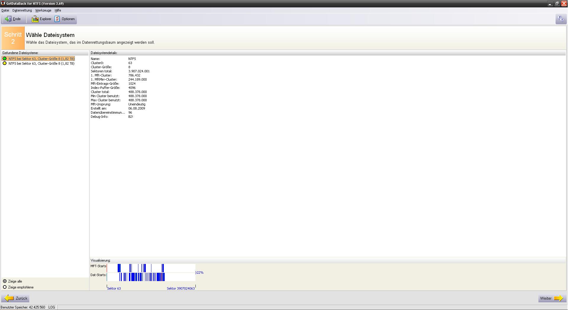 Ebenfalls habe ich ein Datenrettungstool mal die Platte scannen lassen (R-Studio), allerdings liefert dies eher unbrauchbare