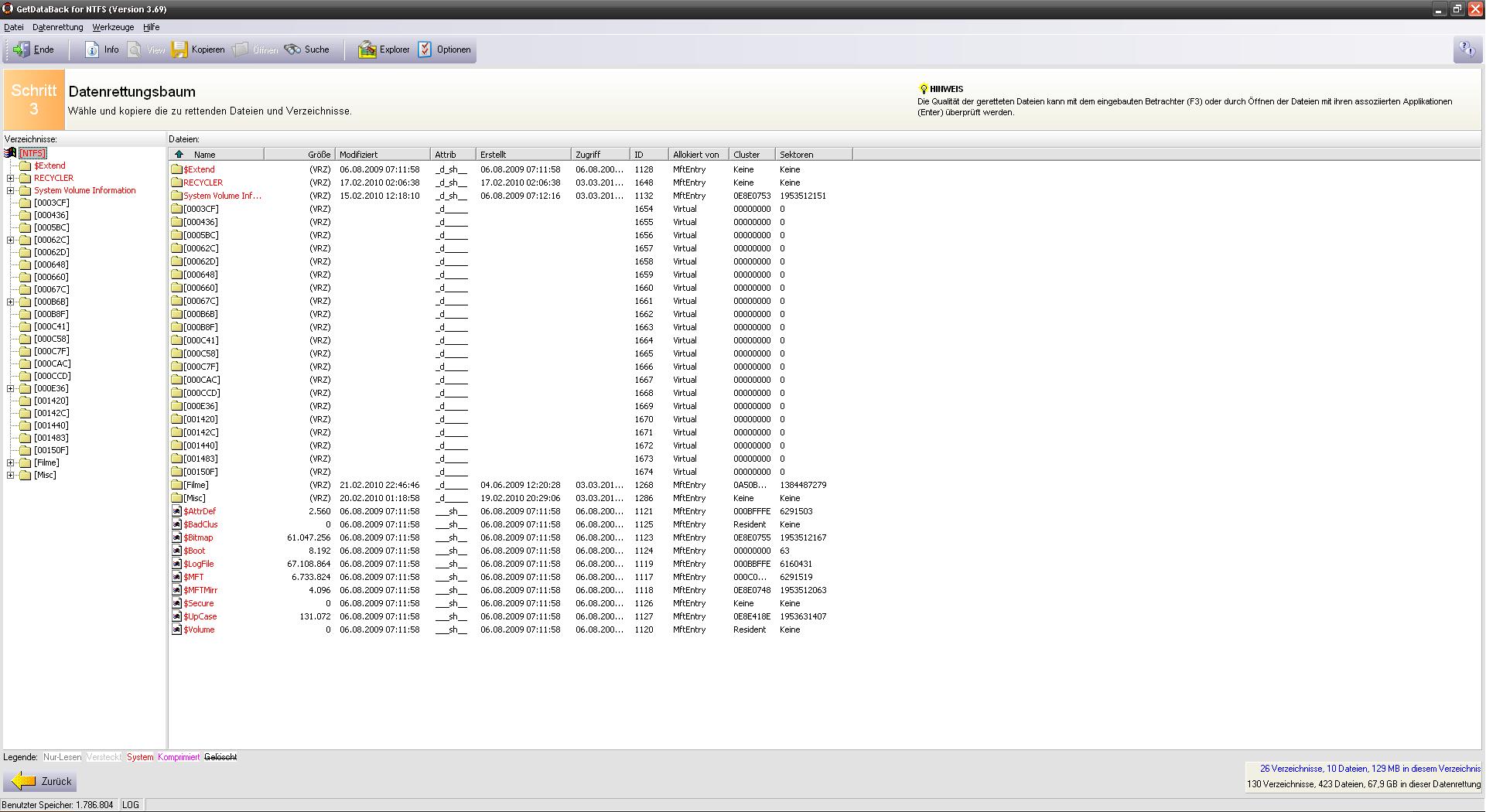 abgespeichert waren. Wobei fehlen der falsche Ausdruck ist (anscheinend ist die MFT irgendwie baden gegangen)