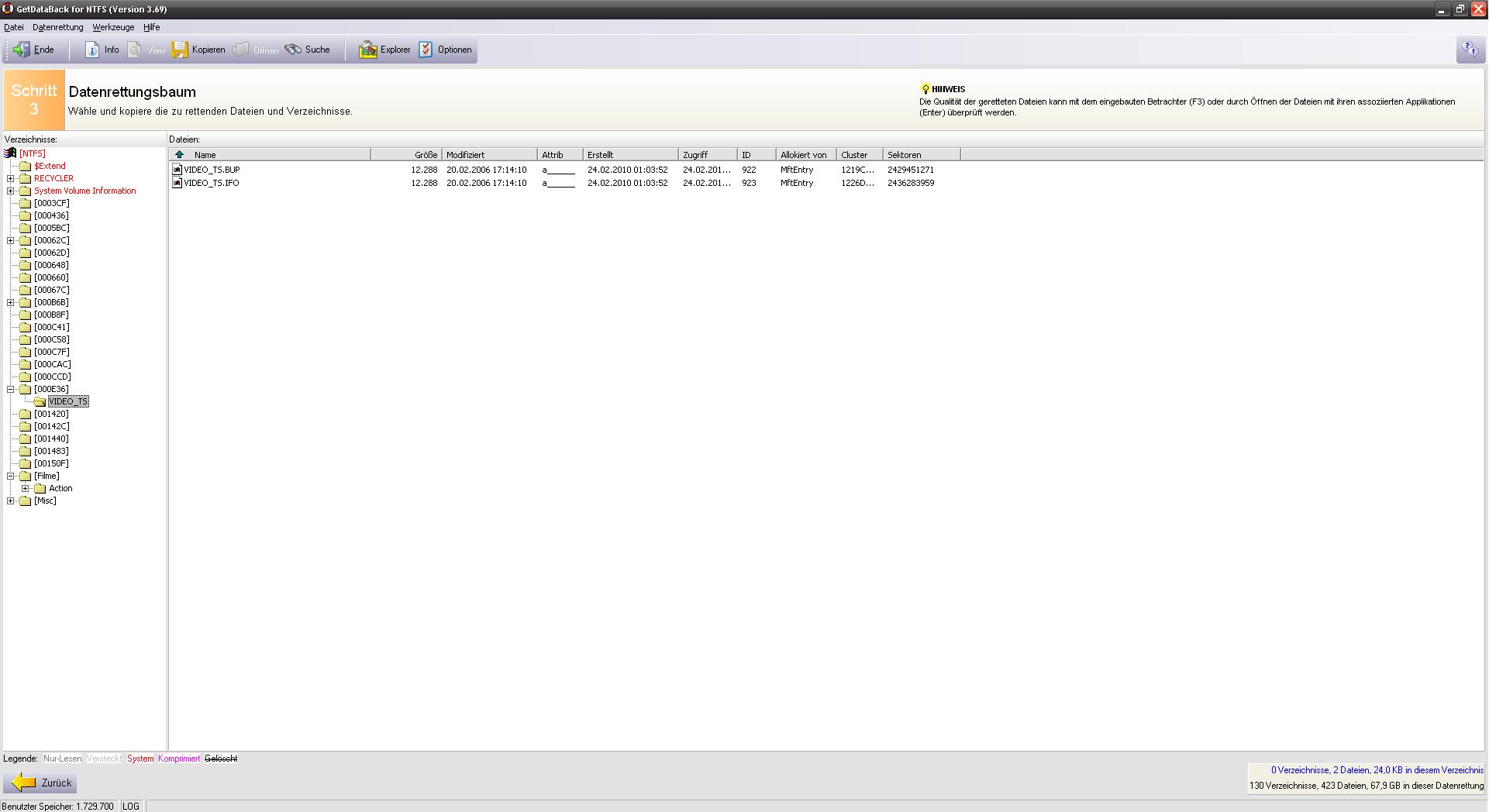 bis auf den reinen Scan habe ich nichts bis jetzt an der Platte verändert. Also weder gelöscht noch wieder hergestellt.
