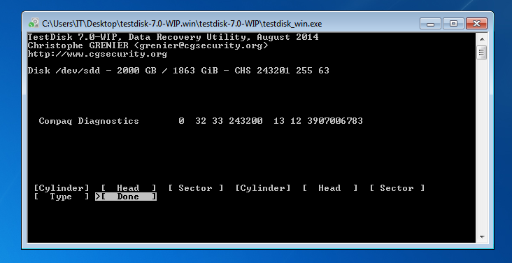 Anbei der Screenshot von Testdisk mit den Einstellungen ist das soweit OK?