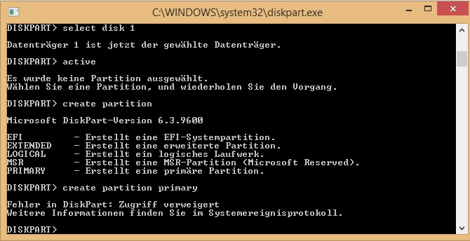 Ich habe es auch schon mit diskpart versucht. Da wird sie angezeigt, kann aber nichts unternehmen.