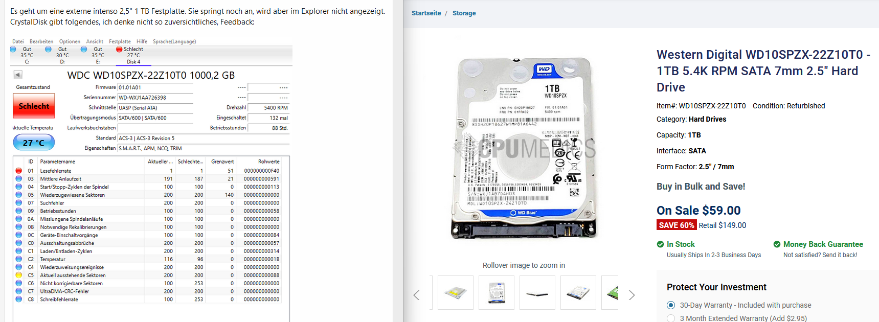 Es geht um eine externe intenso 2,5" 1 TB Festplatte. Sie springt noch an, wird aber im Explorer nicht angezeigt.
